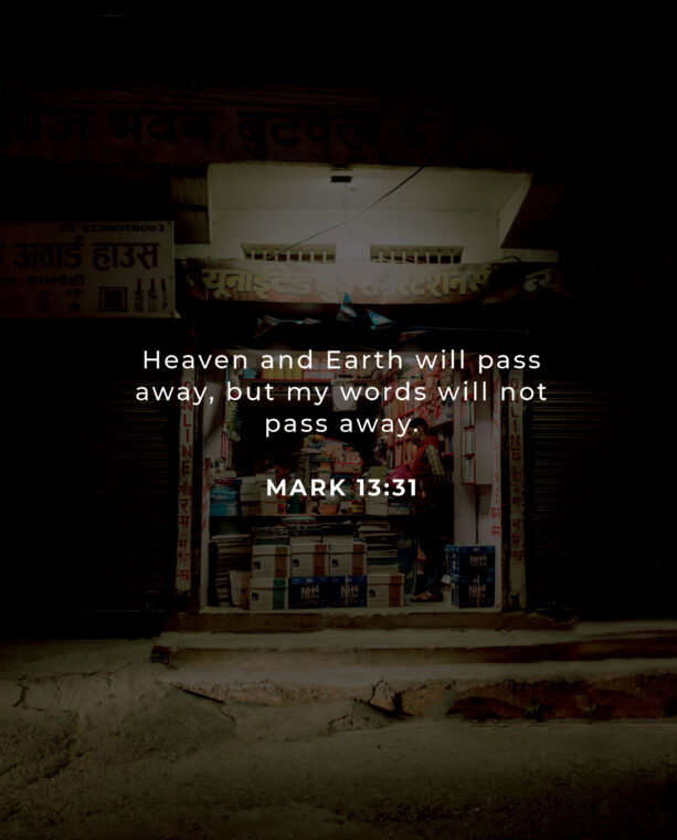 Jesus spoke these words after prophesying about the temple’s destruction. He warned of false prophets, wars, earthquakes, famine, persecution of the faithful, quarrels between brothers, and tribulation. All this would mean the end of the times. This would be the sign of Christ’s return. Are you persevering in prayer and attuned to the Lord Jesus, steadfast in the Scriptures? If you do not know Him, there is still a room in the Kingdom of God. Repent of your sins, and confess Christ as your Savior, handing over all your burdens to Him. He cares for you. Do not leave the decision for tomorrow — the Lord will come soon. If you are already a disciple of Christ, do not worry about the timing of His second coming. Persevere in your efforts, resting in God’s sovereignty. Although we will be hated by the world, we can remain faithful in the power of the Holy Spirit, preaching the Gospel all the time. None of the Lord’s words will pass in vain, and none of His purposes can be thwarted.
