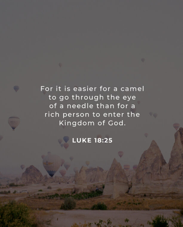 Every believer in Christ longs to experience God’s Kingdom on Earth and desires to enter the Lord’s Kingdom for eternity. Though the Kingdom of God is open to all, it is not accessible by all. What did Jesus actually mean when He said these words immediately after interacting with the rich young ruler? According to one tradition, the “eye of a needle” refers to a gate in the wall of Jerusalem. During the day, this large gate is kept open through which anyone, including a camel, can easily pass. But at night, the large gate is shut and a smaller door in the center of the gate is opened, which only allows people to walk through. If a rich merchant brings merchandise on a camel’s back, it is impossible to enter through the narrow smaller gate. The merchant has to shed most of his possessions and remove the saddle from the camel’s back. Even still, the camel cannot walk through the gate, but has to kneel and crawl with much difficulty into the city.